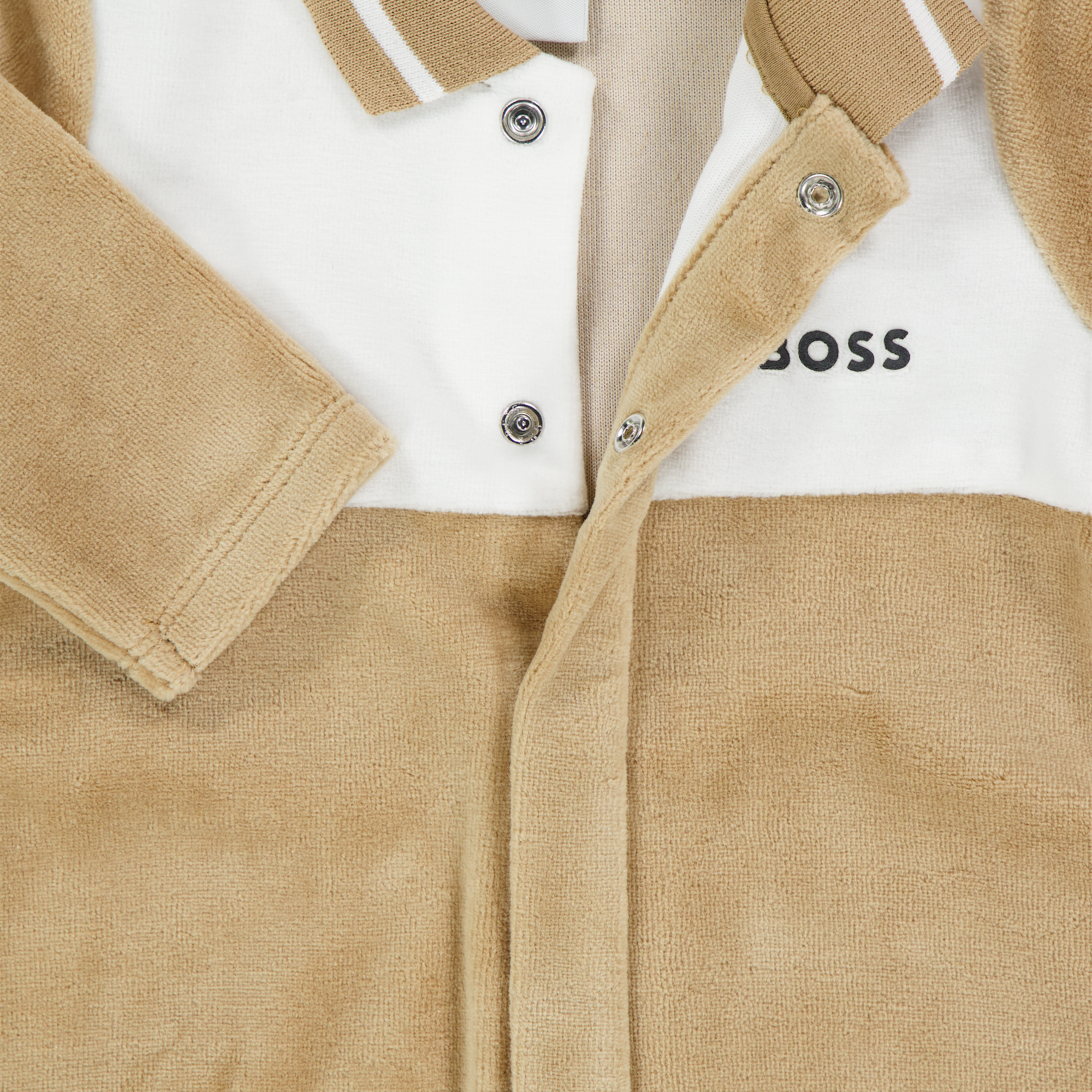 Wrap your little one in pure luxury with it Boss Baby Boys Playsuit in Camel. This refined Playsuit, Made of soft velvet, it offers unparalleled comfort and an elegant look. The rich camel shade and subtle details radiate timeless class, perfect for the stylish baby.