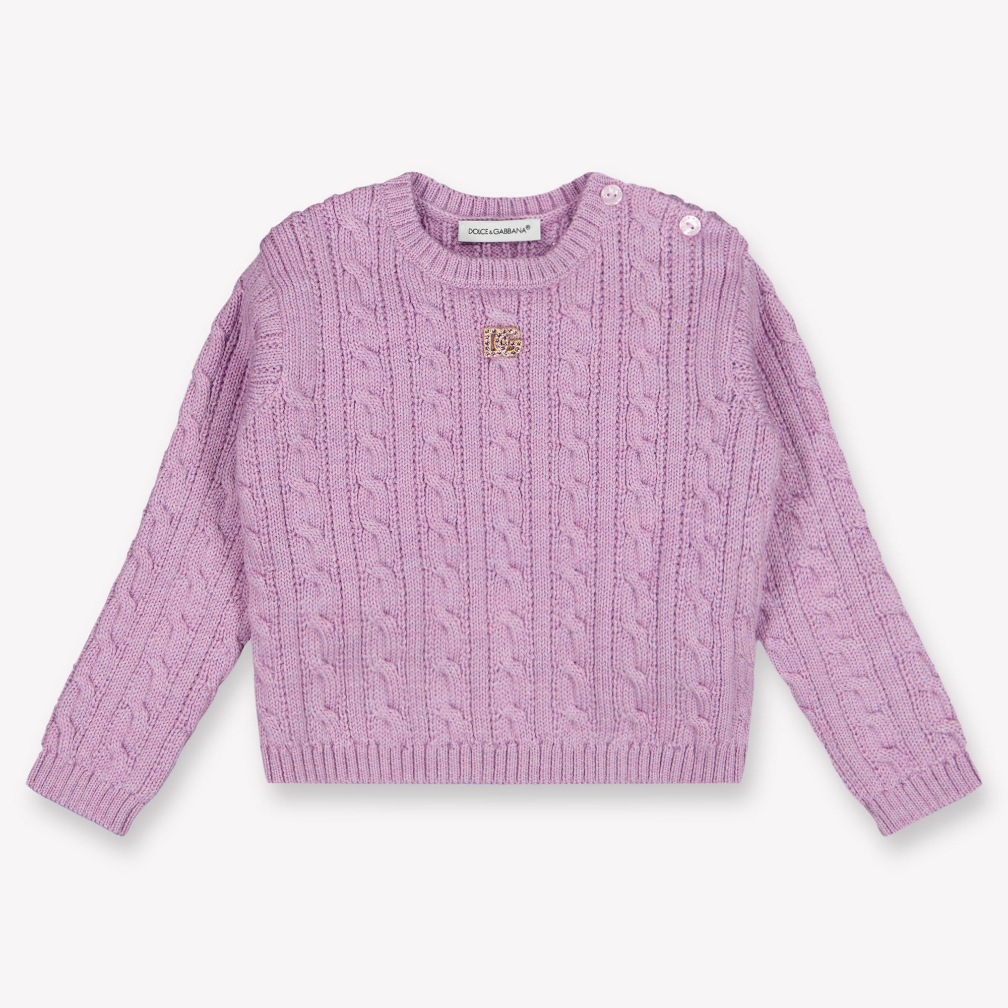 Discover the enchanting charm of Dolce & Gabbana Baby girl's sweater Lilac. This refined cable sweater embraces your little one with the softest materials and offers a touch of luxury in every thread. 🌸 The elegant one Lilac shade and the subtle brand detail provide a timeless look that fits perfectly for any occasion.