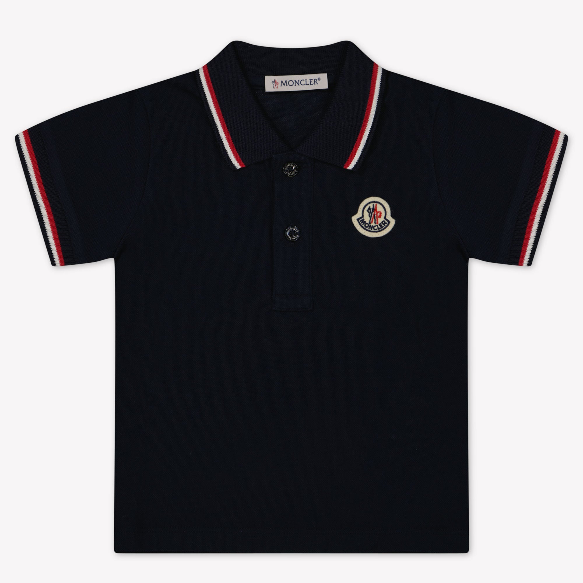The subtle stripe collar and iconic Monclerlogo provide a timeless look, ideal for any occasion. 👶