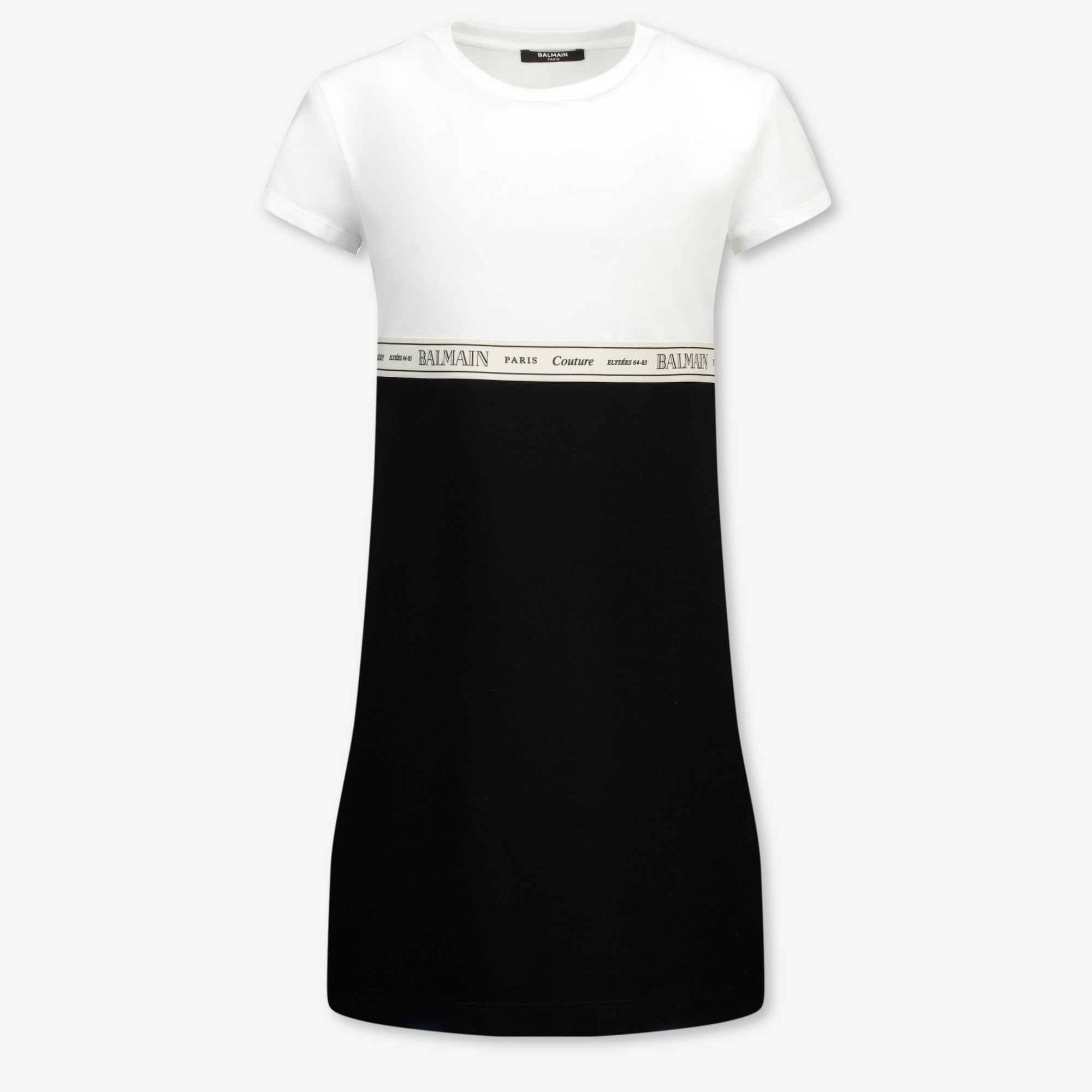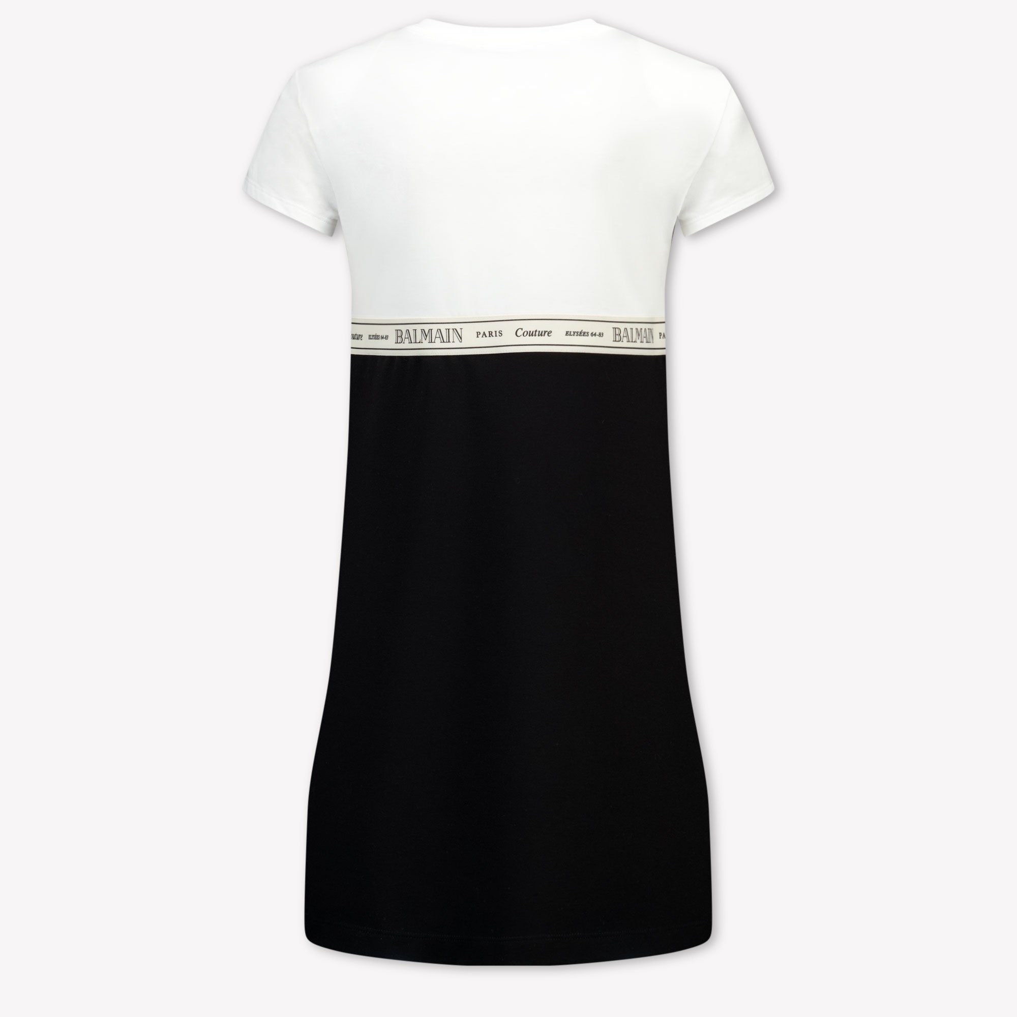 Ontdek de verfijning van de Balmain Kinder Meisjes Jurk in Zwart. Met een tijdloze zwart-wit combinatie en subtiele logoband, straalt deze jurk pure elegantie uit. 🖤