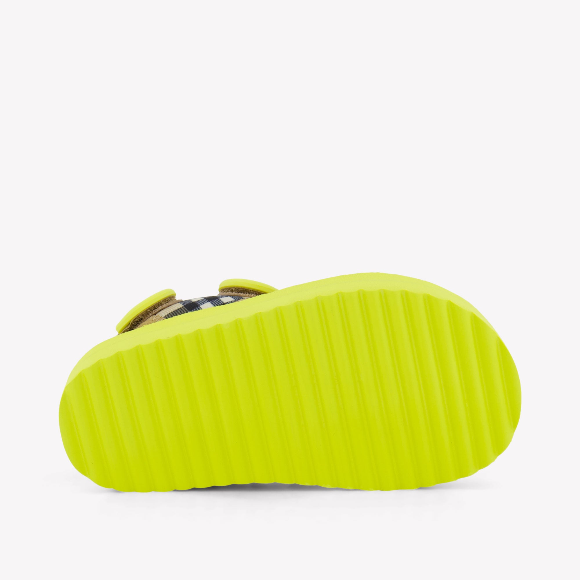 Laat jouw kleine trendsetter stralen in deze opvallende Burberry Lou sandalen in frisse lime. Het klassieke ruitdessin krijgt een moderne twist dankzij de neon accenten en het speelse design. Lichtgewicht, comfortabel en stijlvol: perfect voor zomerse avonturen. De verstelbare bandjes zorgen voor een optimale pasvorm, terwijl het iconische logo en de levendige kleur zorgen voor een high-fashion uitstraling. ✨