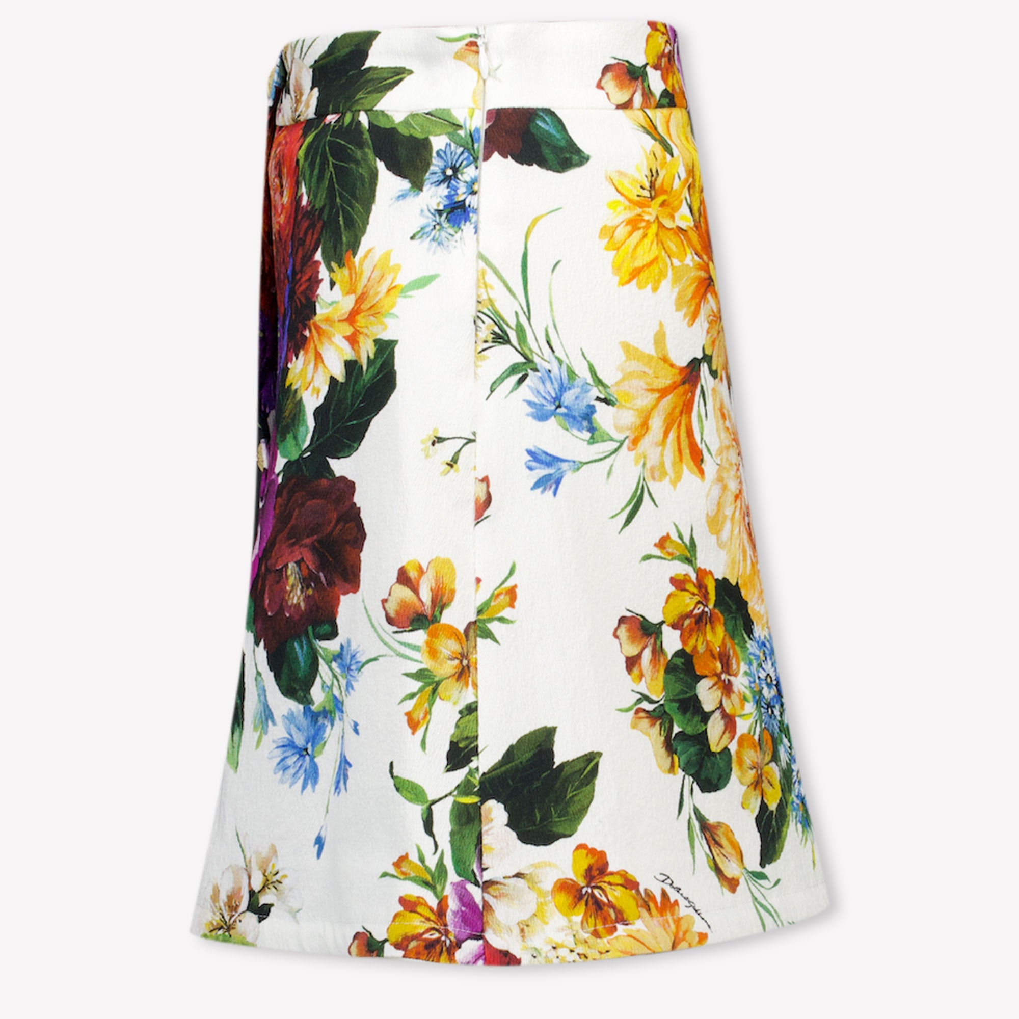 Stap in een wereld van betoverende elegantie met dit Dolce & Gabbana kinderrokje. De levendige bloemenprint op een zuiver witte achtergrond straalt verfijning en speelsheid uit. 🌸