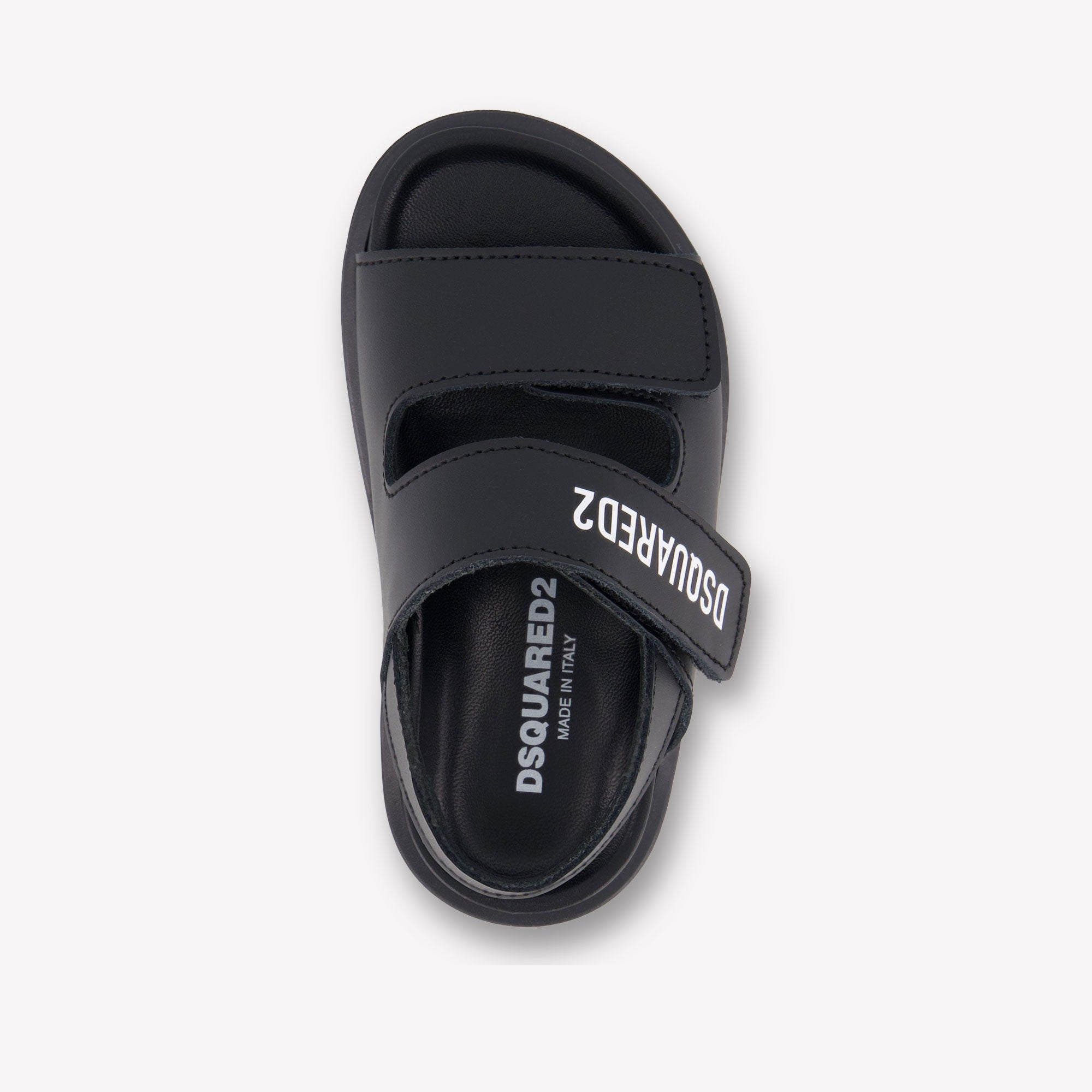 Laat je kleine stijlmaker opvallen met deze zwarte Dsquared2 sandalen: een perfecte mix van comfort, vakmanschap en iconische flair. Het minimalistische design wordt versterkt door het contrasterende DSQUARED2-logo en de hoogwaardige leren afwerking. Dankzij de drie verstelbare klittenbandsluitingen trek je ze moeiteloos aan en uit — ideaal voor zonnige avonturen met een luxe twist 🌞✨.