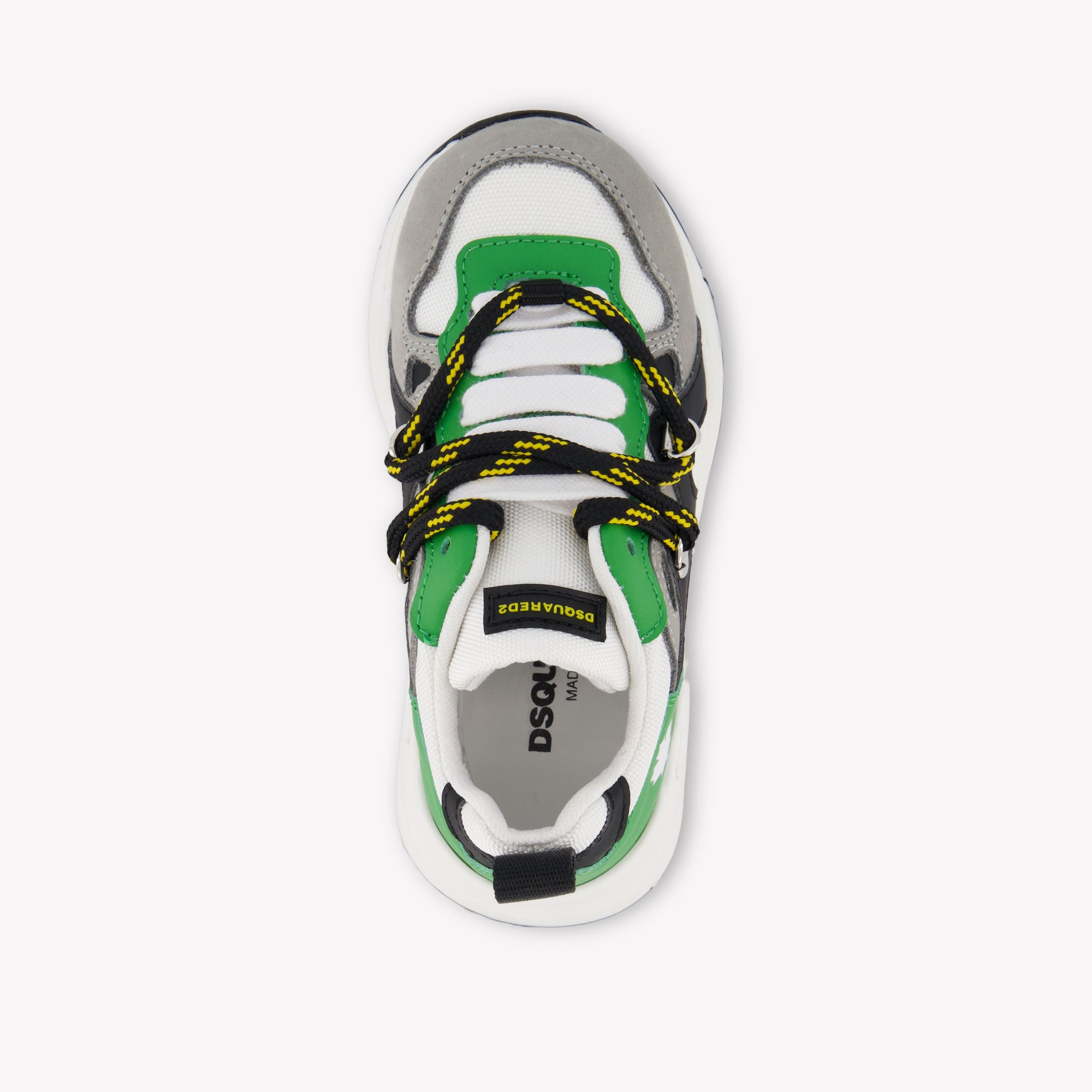Ontdek de veelzijdige elegantie van deze Dsquared2 unisex sneakers in een levendige groene tint. Deze schoen combineert stijlvol design met uitzonderlijk comfort, perfect voor de kleine avonturiers. Het hoogwaardige materiaal en de verfijnde afwerking maken dit een must-have voor modebewuste ouders. De dubbele veters zorgen niet alleen voor een stevige pasvorm, maar voegen ook een speelse touch toe. 🌟