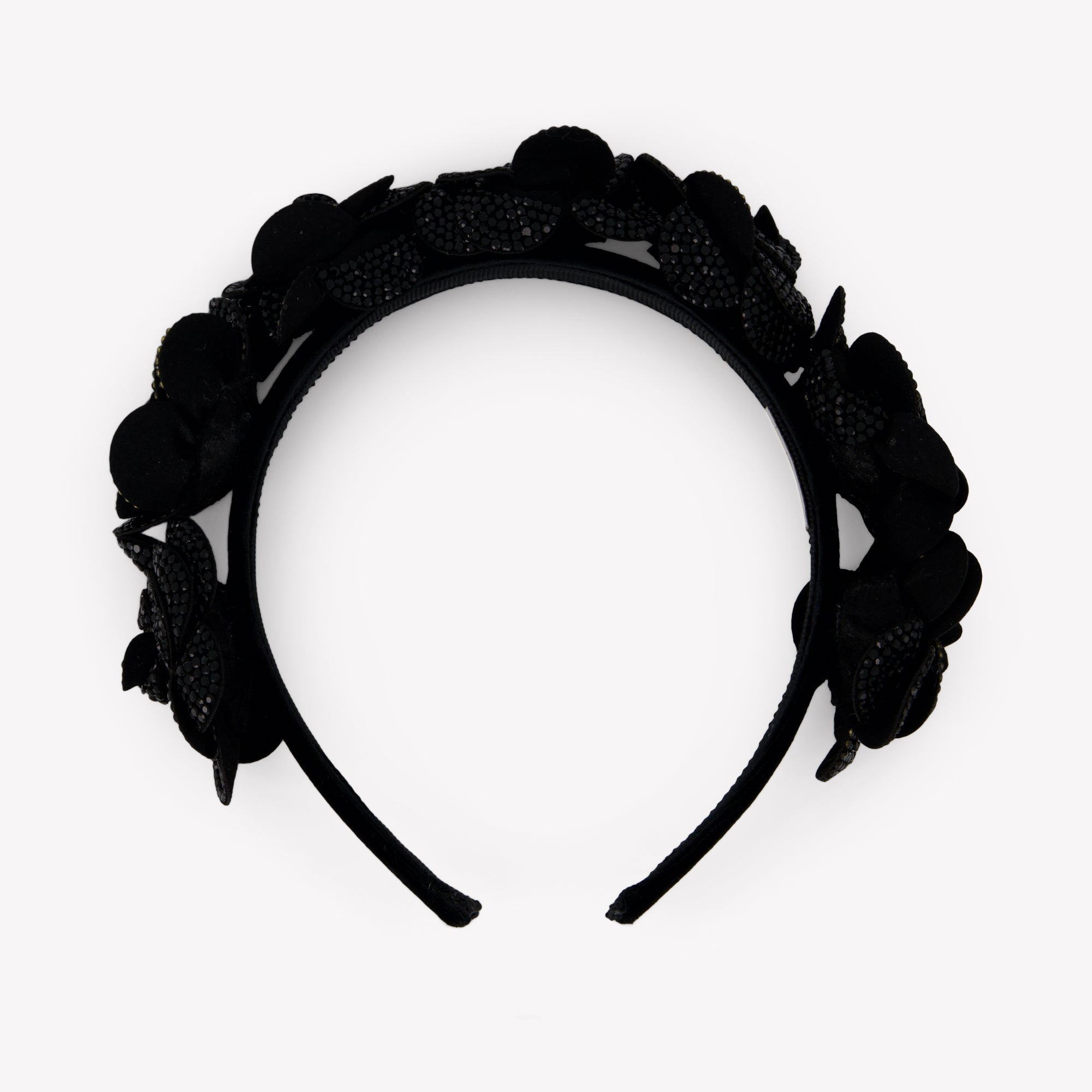 Ontdek de magie van verfijnde elegantie met de MonnaLisa diadeem. 🌹 Deze zwarte accessoire, subtiel bezet met delicate rozetten, biedt een tijdloze allure die elke outfit naar een hoger niveau tilt. Voel de luxe van hoogwaardige materialen die comfort en stijl moeiteloos combineren.