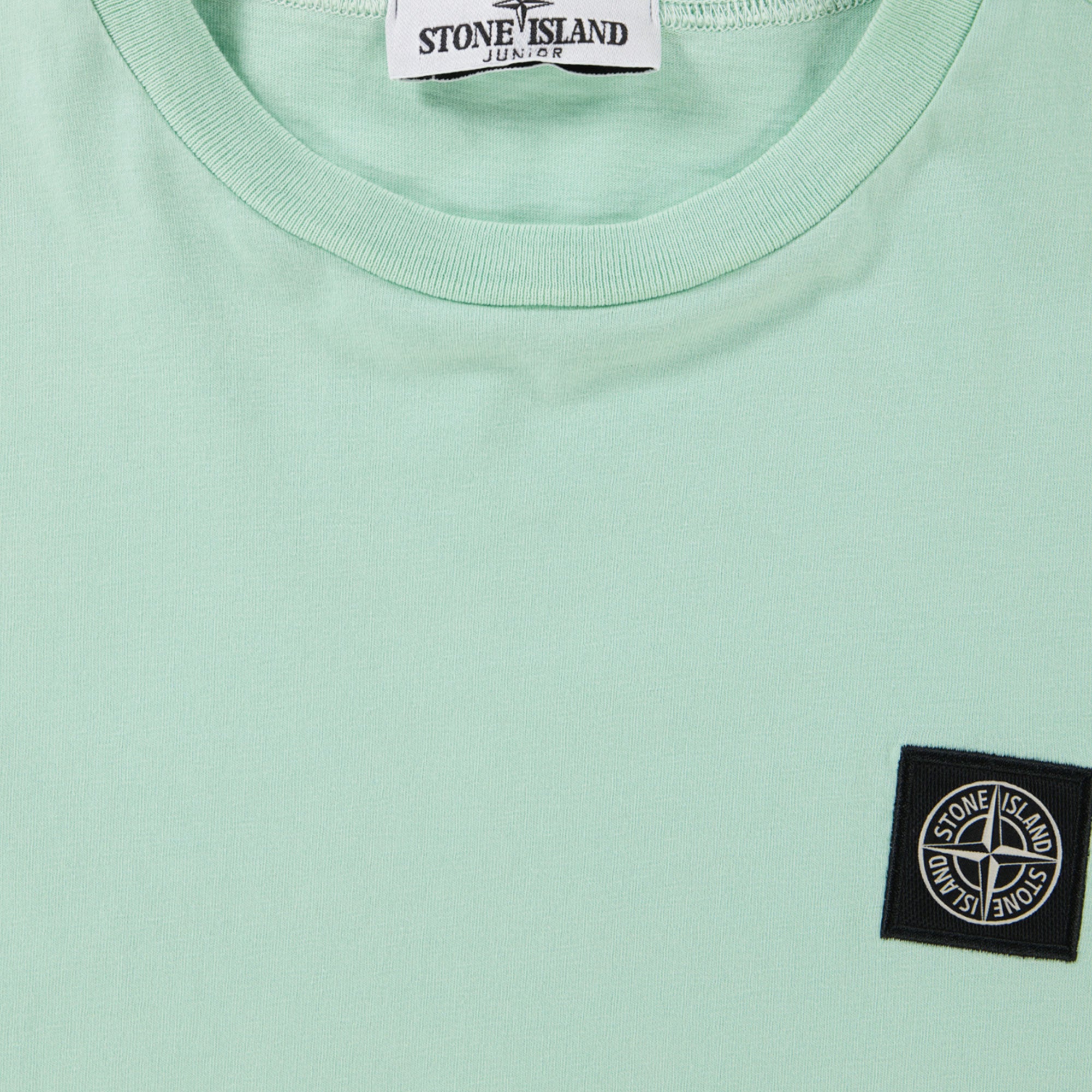 Laat je kleine trendsetter stralen in dit mintkleurige Stone Island T-shirt. Gemaakt van de fijnste katoenmix, biedt dit shirt ultiem comfort met een vleugje luxe. De subtiele Stone Island badge op de borst voegt een verfijnd accent toe dat iedere outfit compleet maakt. 🌿